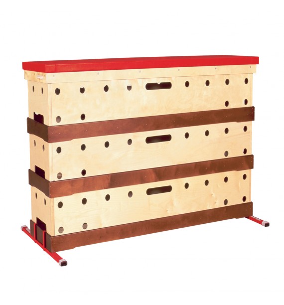 Consists of 3 Educ'Gym sections of a height of 33 cm. Ideal for the introduction of vaulting, facility to use each section separately. Padded removable cover section, stabilisers and transport trolleys.