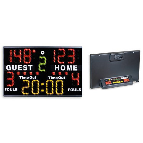 Visualizing scores of the two teams, chronometer, time out, period, ball possession or service. Acoustic signal. Complete of power adaptor. On demand available as well: transport case, rechargeable battery, battery charger, separate control panel with connection cable. Made in EU.