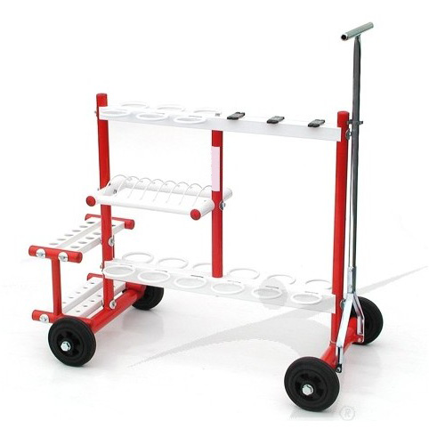 on wheels, capacity: 6 hammers, 12 shot puts, 7 discuses and 12 javelins, made of steel tubes and sections powder painted, hold several kinds of implements