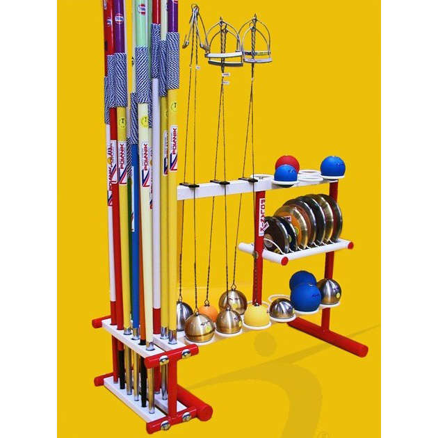 stationary, capacity: 6 hammers, 12 shot puts, 7 discuses and 12 javelins, made of steel tubes and sections powder painted, hold several kinds of implements