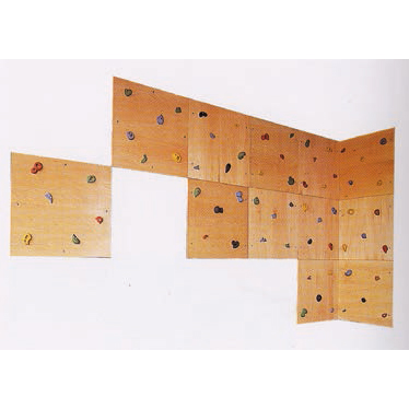 Practice climbing area made of 12 wooden panels with resin handholds mounted onto steel frame to be fixed to the wall