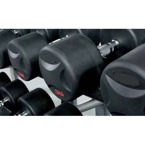 Monobloc dumbbells 5-40 kg, in 2,5 kg increment.