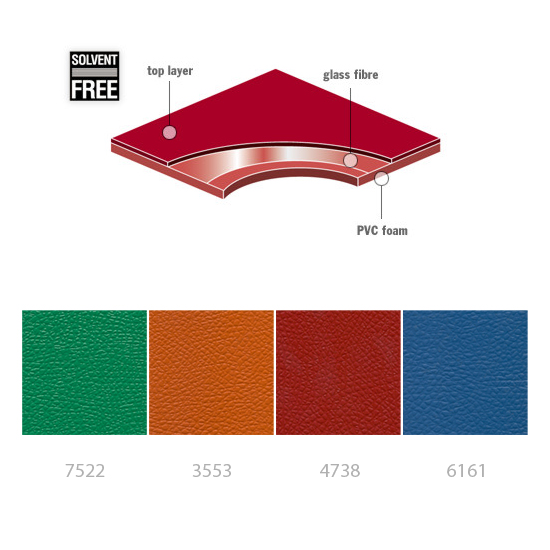 Grabo Gymfit 44 is an indoor vinyl sport floorings sheet developed for fitness rooms, with embossed surface, in uni colour and in wood design.