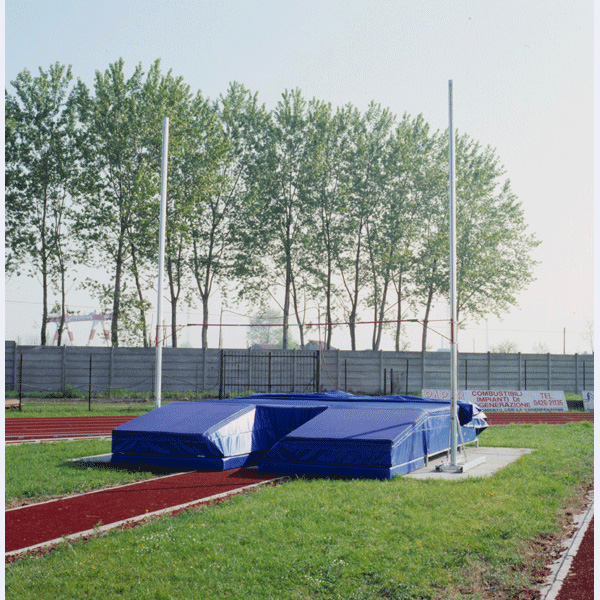 Pair of aluminium pole vault stands, height adjustable up to 650 cm
