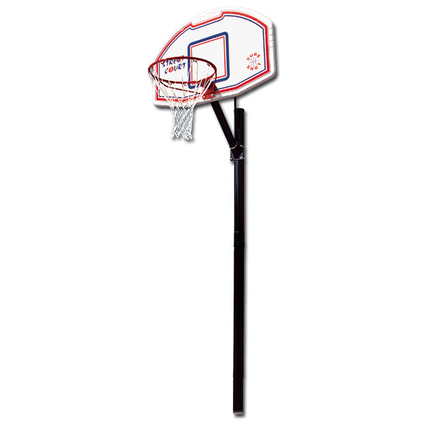 Recreational basket and mini-basket unit, steel post with socket, plastic backboard, ring and net