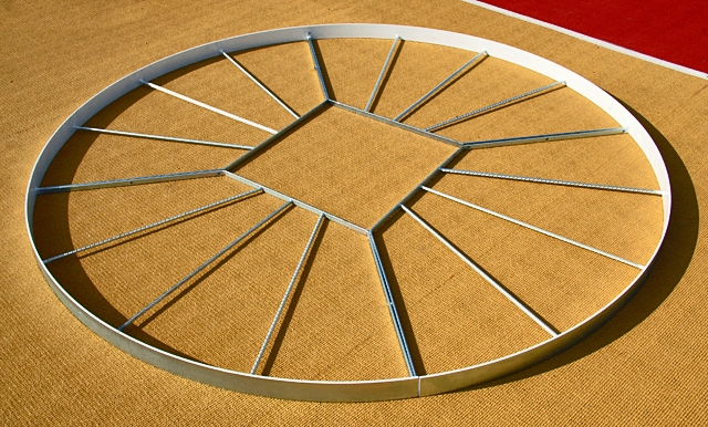 diam. 2135 mm, galvanized steel, IAAF certificate no. E-06-0450, set contains four parts (quadrants), made of galvanized steel, screwed with 8 bolts, inside coated with white paint