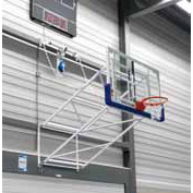 Wall-mounted up-folding basketball backstops can be equipped with a system to