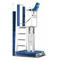 and height-adjustable blue plastic seat with back.