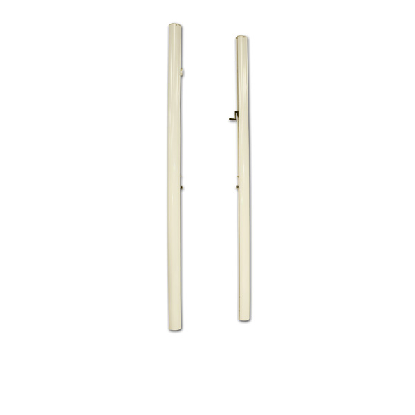 Varnished aluminium oval section volleyball system with ground sockets and net tensioner